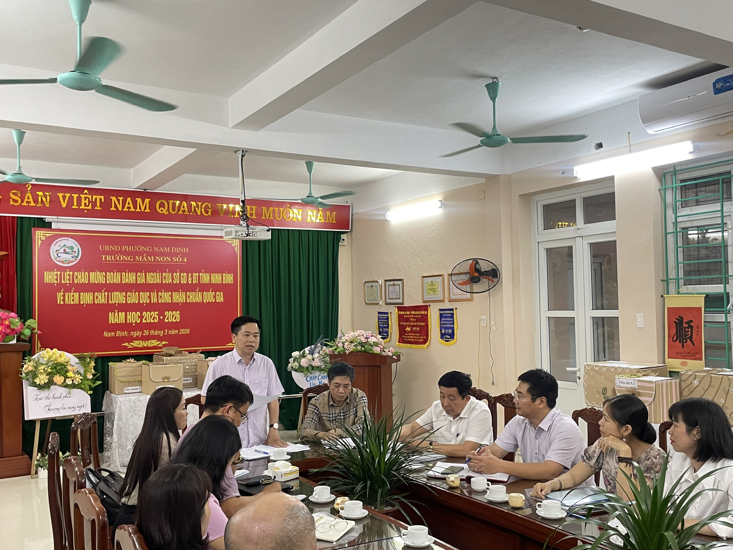 Thực hiện Quyết định số 280/QĐ-SGDĐT ngày 10 tháng 02 năm 2026 của Giám đốc Sở GDĐT tỉnh Ninh Bình về việc thành lập Đoàn đánh giá ngoài Trường Mầm non Số 4, phường Nam Định.